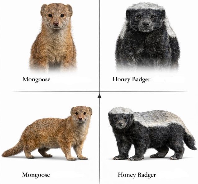 ( HERPESTES ICHNEUMON cum MELLIVORA CAPENSIS )