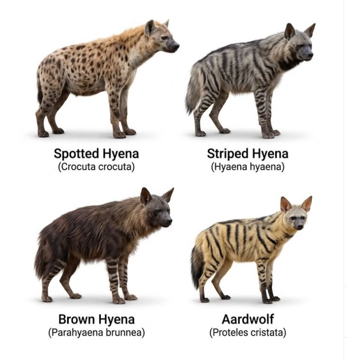( Üçü de Afrika'da yaşar. [Anadolu'da soyu tükendiği düşünülen çizgili sırtlan, 25 Nisan 2020'de, Kahramanmaraş'ta da görüntülenmiştir.] )